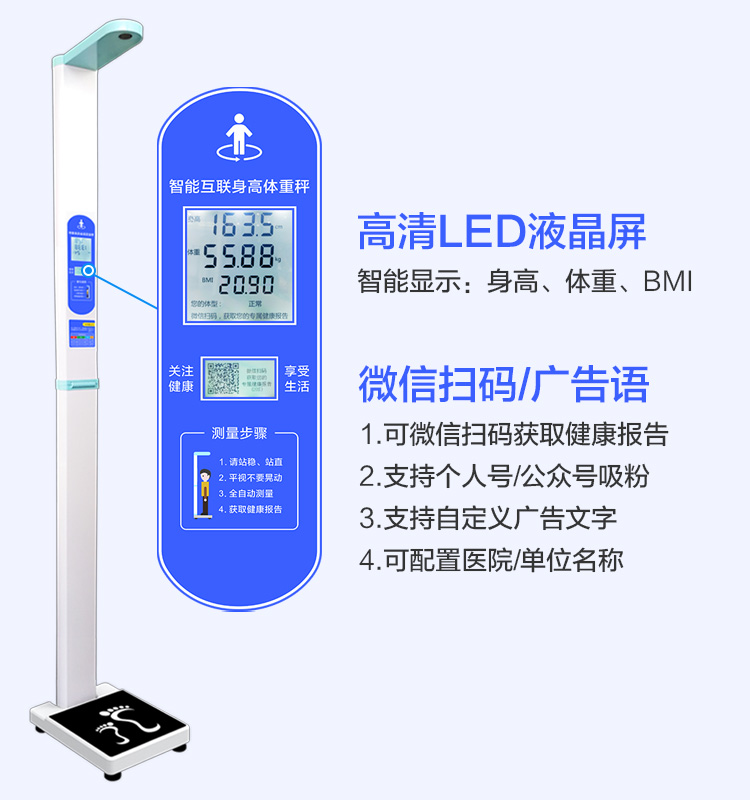上禾SH-201智能雙屏身高體重測量儀,適合90%以上的春季體檢使用場景,雙屏顯示、可折疊、可設(shè)置您的專屬宣傳語、全自動測量、語音播報、數(shù)據(jù)傳輸?shù)龋胍墓δ?,它都有?/p>