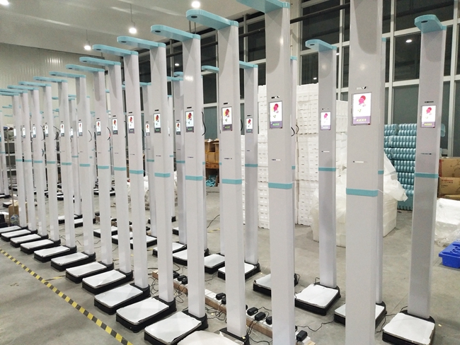 在上禾科技總部廠房中,一臺臺智能身高體重測量設備整裝待發(fā),在發(fā)給客戶之前,還有一道必不可少的環(huán)節(jié),那就是對設備的檢測和校準。專業(yè)人員借助校準專用工具,一絲不茍地進行著檢測工作,只為保證發(fā)給為客戶的設備就是最好的。